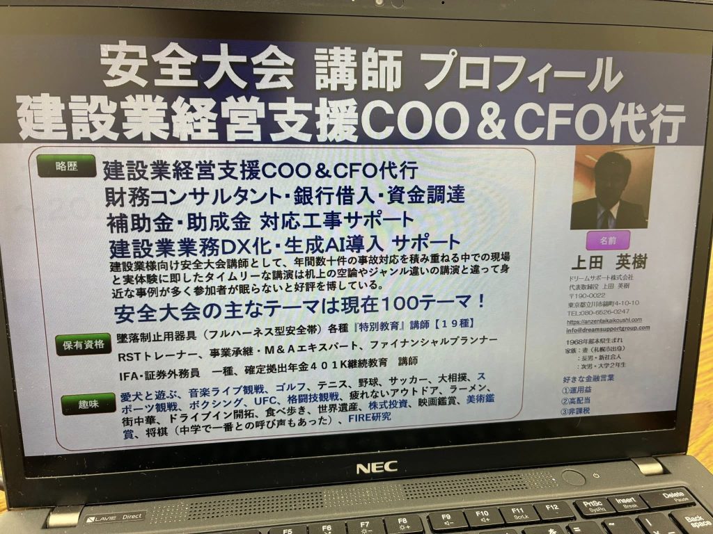 職長・安全衛生責任者教育やその他の建設業向け特別教育の出張講習のご相談もいただき来週打ち合わせとなりました。
