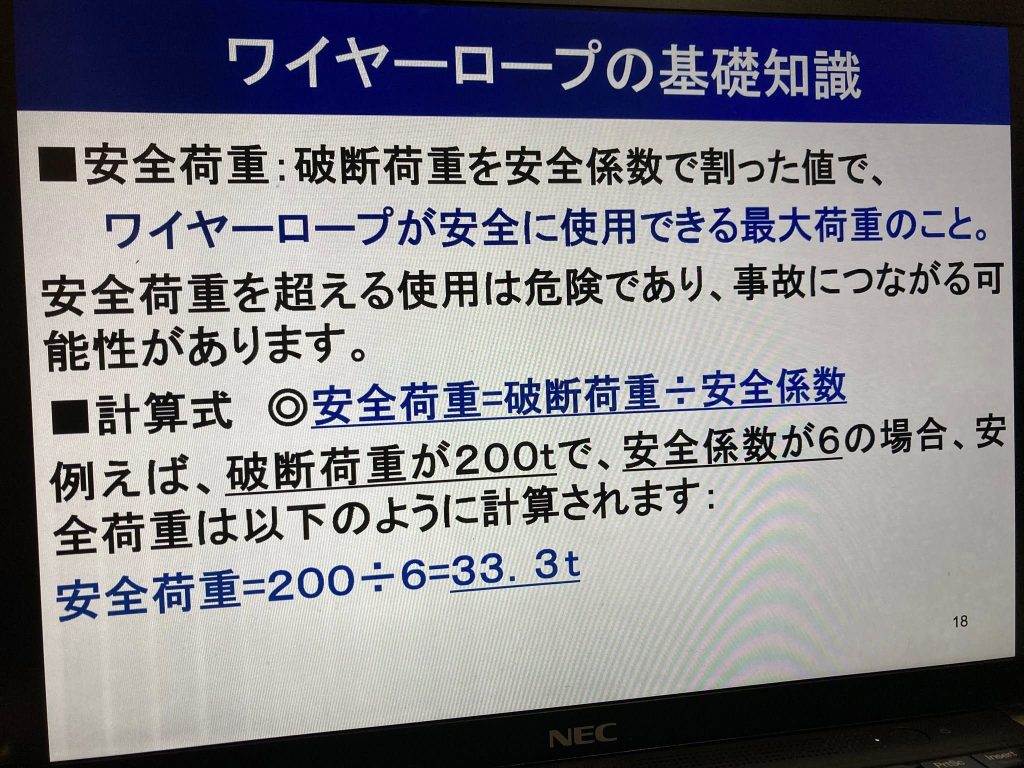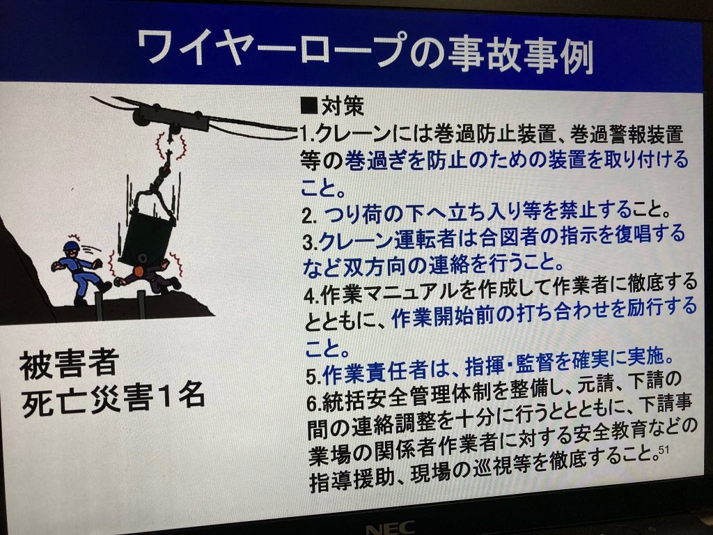 200トン級のワイヤーロープの基礎知識や使用方法、リスクについての講話の要望がありましたのでその部分を60分+労災関連やアトラクションを計30分入れて講話。