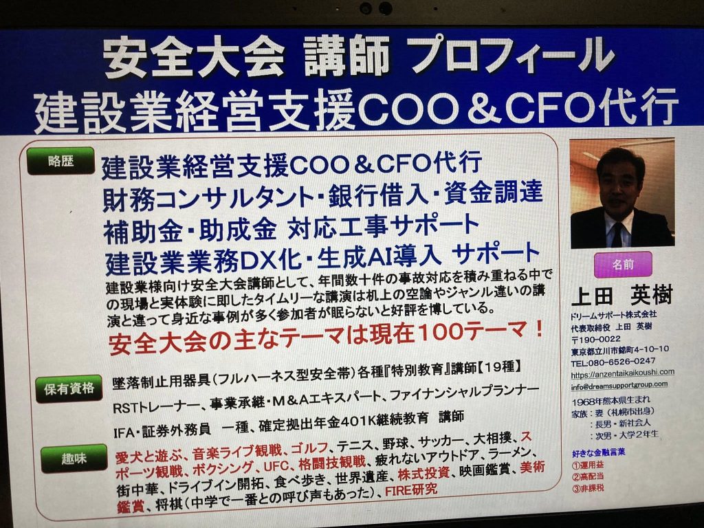 高知県高知市の地場ゼネコン総合建設業様よりご依頼いただき、安全大会講師で出動。