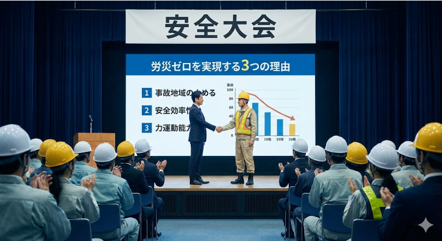 安全大会は単なる年中行事ではありません。ひとたび重大事故が起きれば、企業の信頼は失墜し、経営そのものが危うくなる建設・製造業界において、唯一無二の「命を守る経営戦略」です。